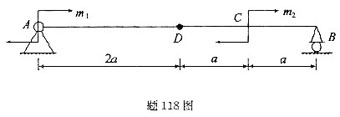 简支梁荷载及几何尺寸如图所示,欲使中点是挠曲线的拐点,则( )。 A.m1/m2=1 B.m1/m2=1/2 C.m1/m2=1/3 D.m...