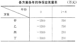 相关内容:项目有,丁四个,投资,方案,寿命,期限,基准,折现率,现金流量