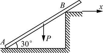 问题 杆AB的A端置于光滑水平面上,AB与水平面夹角为 30°,杆重为P,如图所示,B处有摩擦,则杆AB平衡时,B处的摩擦力与x方向的夹角为(  )。
