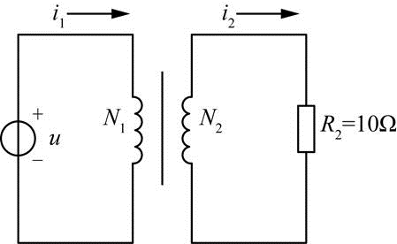 问题 图示变压器为理想变压器,且N1=100匝,若希望I1=1A时,PR2=40W,则N2应为(  )。