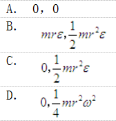 问题 图示均质圆轮,质量为m,半径为r,在铅垂图面内绕通过圆盘中心O的水平轴转动,角速度为ω,角加速度为ε,此时将圆轮的惯性力系向O点简化,其惯性力主矢和惯性力主矩的大小分别为(  )。