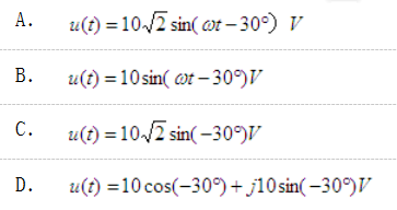 问题 已知有效值为10V的正弦交流电压的相量图如图所示,则它的时间函数形式是(  )。