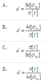 问题 已知铆钉的许用切应力为[τ],许用挤压应力为[σbs],钢板的厚度为t,则图示铆钉直径d与钢板厚度t的合理关系是(  )。