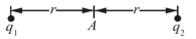 问题 真空中,点电荷q1和q2的空间位置如图所示。若q1为正电荷,且q2=-q1,则A点的电场强度的方向是(  )。