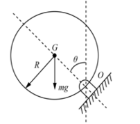 问题 均质圆柱体半径为R,质量为m,绕关于对纸面垂直的固定水平轴自由转动,初瞬时静止(G在O轴的铅垂线上),如图所示。则圆柱体在位置θ=90°时的角速度是(  )。