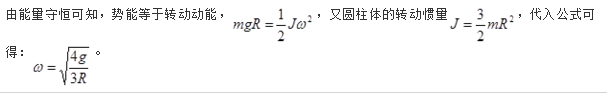 均质圆柱体半径为R,质量为m,绕关于对纸面垂直的固定水平轴自由转动,初瞬时静止(G在O轴的铅垂线上),如图所示。则圆柱体在位置θ=90°时的角速度是(  ...
