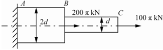 问题 圆截面杆ABC轴向受力如图,已知BC杆的直径d=100mm,AB杆的直径为2d,杆的最大的拉应力是(  )。