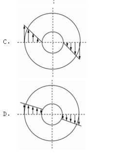 问题 图示受扭空心圈轴横截面上的切应力分布图,其中正确的是(  )。