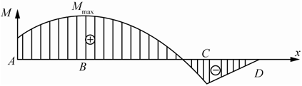 问题 梁的弯矩图如图示,最大值在B截面,在梁的A、B、C、D四个截面中,剪力为零的截面是(  )。