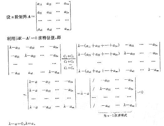 问题 若n阶矩阵A的任意一行中n个元素的和都是a,则A的一特征值为: A. a B.-a C. 0 D. a-1