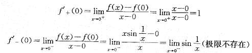问题 在x=0处下列结论中哪个结论正确? A.左导数存在,右导数不存在 B.右导数存在,左导数不存在 C.左右导数都存在,但导数不存在. D.导数存在
