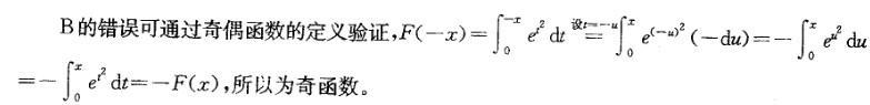 解析 提示:选项D有明显错误,首先排除, 选项A、B可逐一分析排除。 选项A的错误通过举例分析说明, f(x)不是奇函数。 选项C正确,计算如下: 设f(x)=ex2,f(x)在[0,1]上连续,在(0,1),f'(x)=2ex2>0,f(x)在[0,1]上单增,故 fmin (0) = 1,fmax (1) =e