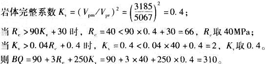 解析 根据《工程岩体分级标准》(GB 50218—1994)第4. 2. 2条, 岩体基本质量指标BQ= 90 + 3Rc+ 250Kv。