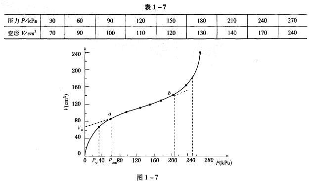 相关内容:预钻,试验,压力,数据,曲线,如图,1-7所示,图中,线段,临塑,荷载,土层