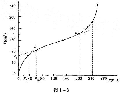 解析 根据《港口工程地质勘察规范》(JTJ 240—1997)第8. 6. 3条,由旁压试验压力和体积变形量关系曲线P—V,确定4个压力特征点Pom、Po、Pf、PL,如图1-8所示。 曲线直线段和曲线第一个切点对应的压力值(初始压力)为Pom,Pom=60kPa; 曲线直线段延长与纵坐标交点Vo,由Vo作P轴的平行线,交于曲线的点对应的压力为Po,Po=30kPa; 曲线直线段的终点对应的压力为临塑压力Pf,Pf =210kPa; 曲线过临塑压力后,趋向于与纵轴平行的渐近线对应的压力为极限压力PL,PL=270kPa。 地基土的承载力特征值为可按下列两种方法确定: ①临塑压力法:fak =Pf-Po=210 -30 = 180kPa; ②极限压力法: