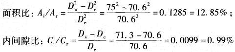 原状取土器外径Dw=75mm,内径Ds=71. 3mm,刃口内径De = 70. 6mm,取土器具有延伸至地面的活塞杆,按《岩土工程勘察规范》(GB 50...