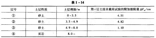 某砂土场地的建筑场地进行了浸水载荷试验,承压板面积为2500cm2,垂直压力为200kPa,初步勘察资料如表1-14所示。该场地土的总湿陷量及湿陷等级分别...