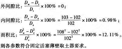 某取土器管靴外径及取样管外径均为108mm,取土器刃口内径为102mm,取样管内径为103mm,根据《岩土工程勘察规范》(GB 50021-2001) (...