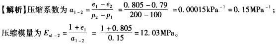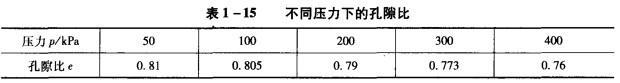 已知某土层的天然孔隙比e0=0.82,在有侧限的条件下进行压缩固结试验,测得不同压力下孔隙比的数据列入表1-15中,则该土层的压缩系数和压缩模量分别为( ...