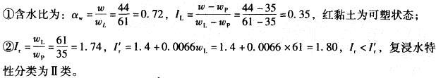 相关内容:黏土,场地,含水量,液限,塑限,该红,地基,状态,复浸,水性,类别,软塑