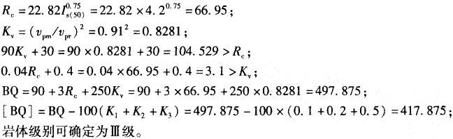 解析 根据《工程岩体分级标准》(GB 50218—1994)第4. 1.1条及4.2.2条,有: