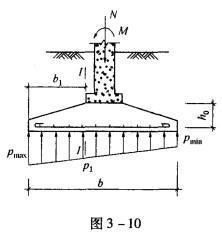如图3 - 10所示的条形基础宽度b= 2m,b1= 0.88m,h0 = 260mm,pmax=217kPa, pmin = 133kPa,基础埋深0....