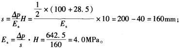 均匀土层上有一直径为10m的油罐,其基底平均压力为100kPa。已知油罐中心轴线上,在油罐基础底面以下10m处的附加应力系数为0.285。通过沉降观测得到...