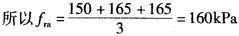 解析 根据《建筑地基基础设计规范》(GB 50007—2002)附录C. 0. 6第2款,当极限荷载小于对应比例界限的荷载值的2倍时取极限荷载的一半为地基承载力特征值。点1, frk= 150kPa;点 2,frk = 165kPa;点 3,frk = 165kPa,frk极差=15kPa,平均值为 160kPa,极差<160×30% =48kPa,
