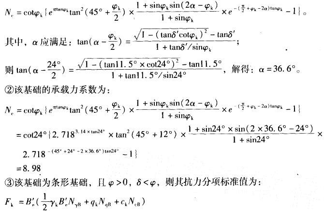 解析 根据《港口工程地基规范》(JTJ 250—1998)第4. 2. 2条、第4. 2. 5~4. 2.6条,具体步骤如下: ①承载力系数计算公式为: