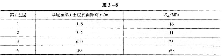 某独立柱基尺寸为4m×4m,基础底面处的附加压力为130kPa,地基承载力特征值fak=180kPa,根据表3-8所提供的数据,采用分层总和法计算独立柱基...