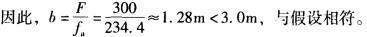 解析 由题假设基础宽度小于3.0m,按《建筑地基基础设计规范》(GB 50007—2002) 第5. 2. 4条修正如下: fa=fak +ηby(b-3) +ηdym (d-0.5) = 220+0.3×18. 5×(3 -3) +1.6×18×(1 -0.5) =234. 4kPa