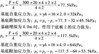 解析 基础埋深为2.0m时,作用于底板上的反力值为: