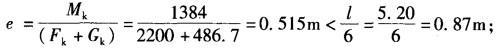 解析 根据题意计算如下:作用在基底形心处的总竖向力为:Fk=F1+F2 =2000 +200 =2200kN;作用在基底处的总力矩为: Mk =M + Vh+F2a=1000 +200×1. 30+200×0. 62 = 1384kN·m; 偏心距为: