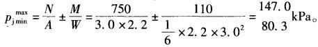 某柱下锥形独立基础的底面尺寸为2200mm×3000mm,上部结构柱荷载N=750kN, M=110kN·m,柱截面尺寸为400mm×400mm,基础采用...