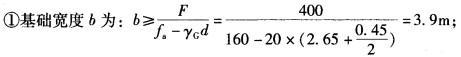 已知墙下条形基础在±0.00标高处的轴力标准值F=400kN/m,埋深2.65m,室内外高差0.45m,修正后的地基承载力特征值fa =160kN/m2,...