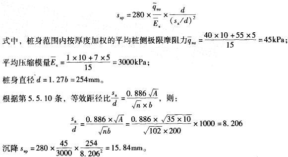 解析 根据《建筑桩基技术规范》(JGJ 94-2008)第5. 6. 2条, 桩土相互作用产生的沉降为: