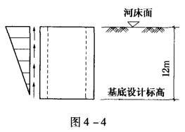 铁路桥梁采用钢筋混凝土沉井基础,如图4-4所示,沉井壁厚0.4m,高度12m,排水挖土下沉施工完成后,沉井顶和河床面平齐,假定井壁四周摩擦力分布为倒三角,...