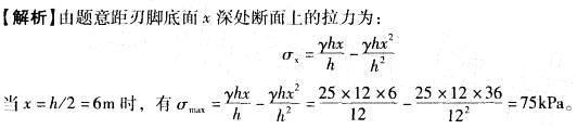 问题 铁路桥梁采用钢筋混凝土沉井基础,如图4-4所示,沉井壁厚0.4m,高度12m,排水挖土下沉施工完成后,沉井顶和河床面平齐,假定井壁四周摩擦力分布为倒三角,施工中沉井井壁截面的最大拉应力与下列何项数值最为接近?(注: 井壁容重为25kN/m3)( ) A. 0 B. 75kPa C. 150kPa D. 300kPa