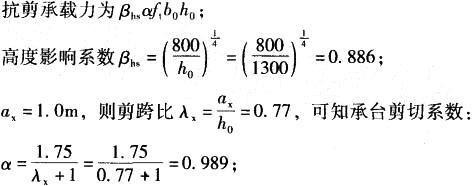 如图4-8所示,竖向荷载设计值F=24000kN,承台混凝 土为C40(ft = 1.71MPa),按《建筑桩基技术规范》验算柱边A—A至桩边连线形成的斜...