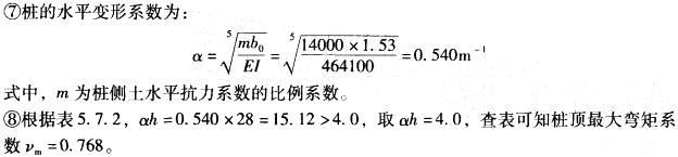某工程用桩为灌注桩,桩径0.8m,入土深度L=28m,桩身配筋12Φ16,采用C30混凝土,桩侧土水平抗力系数的比例系数m = 14MN/m4,已知条件:...