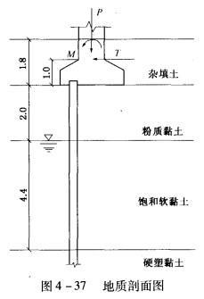 相关内容:建筑物,地质,剖面,土性,指标,如图,和表,4-8所示,柱基顶,承受,荷载,特征值,轴力,2040kN,弯矩,剪力
