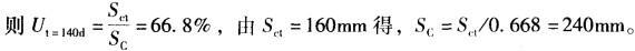 在软土地基上快速填筑了一路堤,建成后70天观测的平均沉降为120mm;140天观测的平均沉降为160mm。已知如果固结度Ut≥60%,可按照太沙基的一维固...