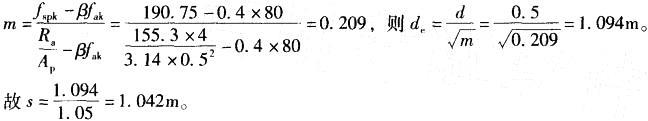 解析 根据《建筑地基处理技术规范》(JGJ 79-2002)第11. 2. 3条,桩间距为: