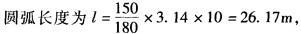 解析 饱和软黏土的不排水内摩擦角为O,在饱和不排水剪切的条件下,抗滑力矩完全由黏聚力提供。 此段圆弧的圆心角为arccos0.5+90°= 150°, 故抗滑力矩为 26. 17×30×10 =7850kN·m。