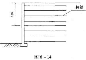 如图6 -14所示的加筋土挡土墙,拉筋间水平及垂直间距Sx=Sy =0.4m,填料重度y= 19kN/m3,综合内摩擦角φ=35°,按《铁路路基支挡结构设...