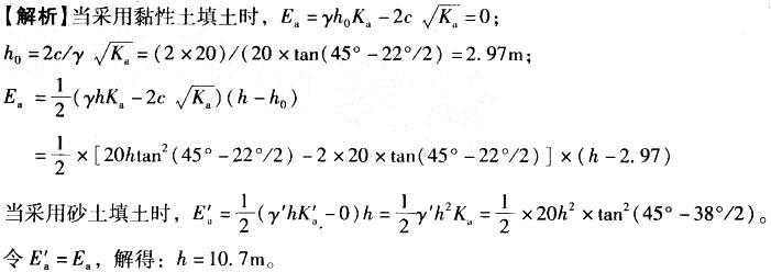 有一重力式挡土墙墙背垂直光滑,无地下水,打算使用两种墙背填土,一种是黏土,c=20kPa,φ=22°,另一种是砂土,c=0,φ=38°,重度都是20kN/...
