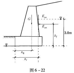 相关内容:如图,6-22所示,重力,式挡,土墙,地基,砂土,单位,长度,自重,墙址,力臂,墙背,压力