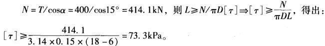 基坑锚杆承载能力拉拔试验时,已知锚杆上水平拉力τ=400kN,锚杆倾角α= 15°,锚固体直径D=150mm,锚杆总长度为18m,自由段长度为6m,在其它...