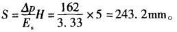 解析 软黏土层的压缩是由于地下水位下降引起有效应力增加,产生附加应力。在软黏土层顶面以下,该附加应力为一常量。 取A点,计算土的压缩模量为: 地下水位下降前,软黏土层顶面处的竖直方向的有效应力为:p0=∑y′ihi= 1.9×10×2 +(2.0-1)×10×18 =218kPa。 水位下降后,软黏土层顶面处竖直方向的有效应力为: p1=∑y′ihi=1.9×10×20 =380kPa; 因为地下水位下降引起的附加应力为:Δp=p1-p0=380-218 =162kPa; 在整个软黏土层内,该附加应力都是相同的。则软黏土的最终压缩量为: