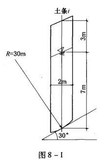 相关内容:圆弧,黏土,边坡,分析,滑弧,半径,土条,宽度,过滑,中心点,切线,水面,水平线,夹角